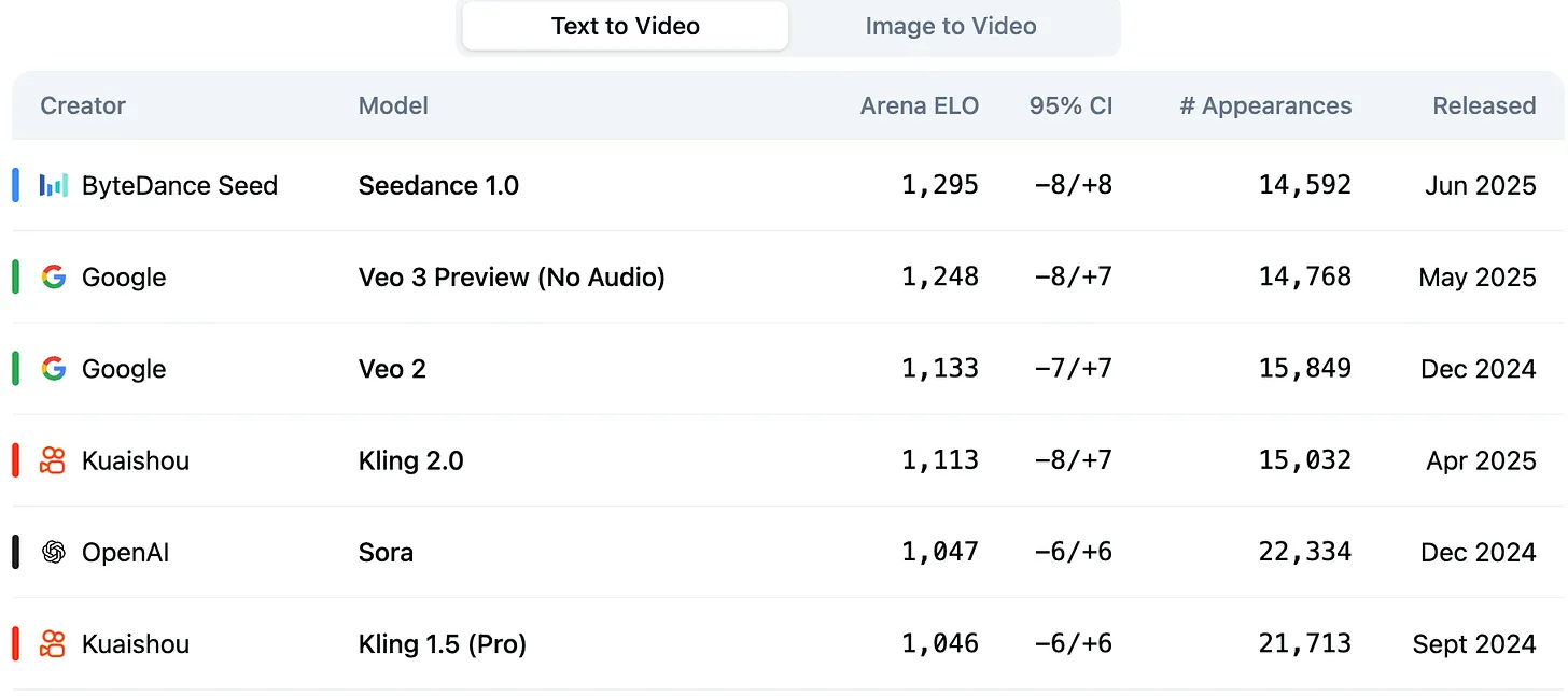 Artificial Analysis’ın sıralamasına göre, Google’ın Veo 3 modelinin üstünlüğü kısa sürdü. ByteDance’in Seedance 1.0 modeli text to video kategorisinde liderliği ele geçirdi. Ve MiniMax’in Hailuo 02 modeli de image to video kategorisinde Veo 3 modelini geride bırakmış görünüyor.