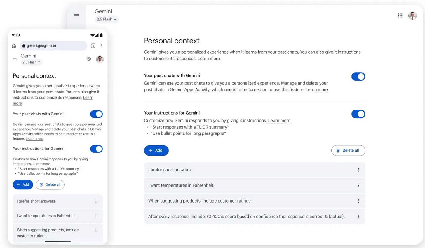 Google, Gemini için iki büyük güncelleme getirdi. Kişisel Bağlam (Personal Context) özelliği ile sohbet geçmişini hatırlayarak kullanıcılara özel yanıtlar üretecek. Ve Deep Think özelliğinin kullanım limitleri artırarak kullanıcıların daha karmaşık sorunları çözmesini kolaylaştıracak.